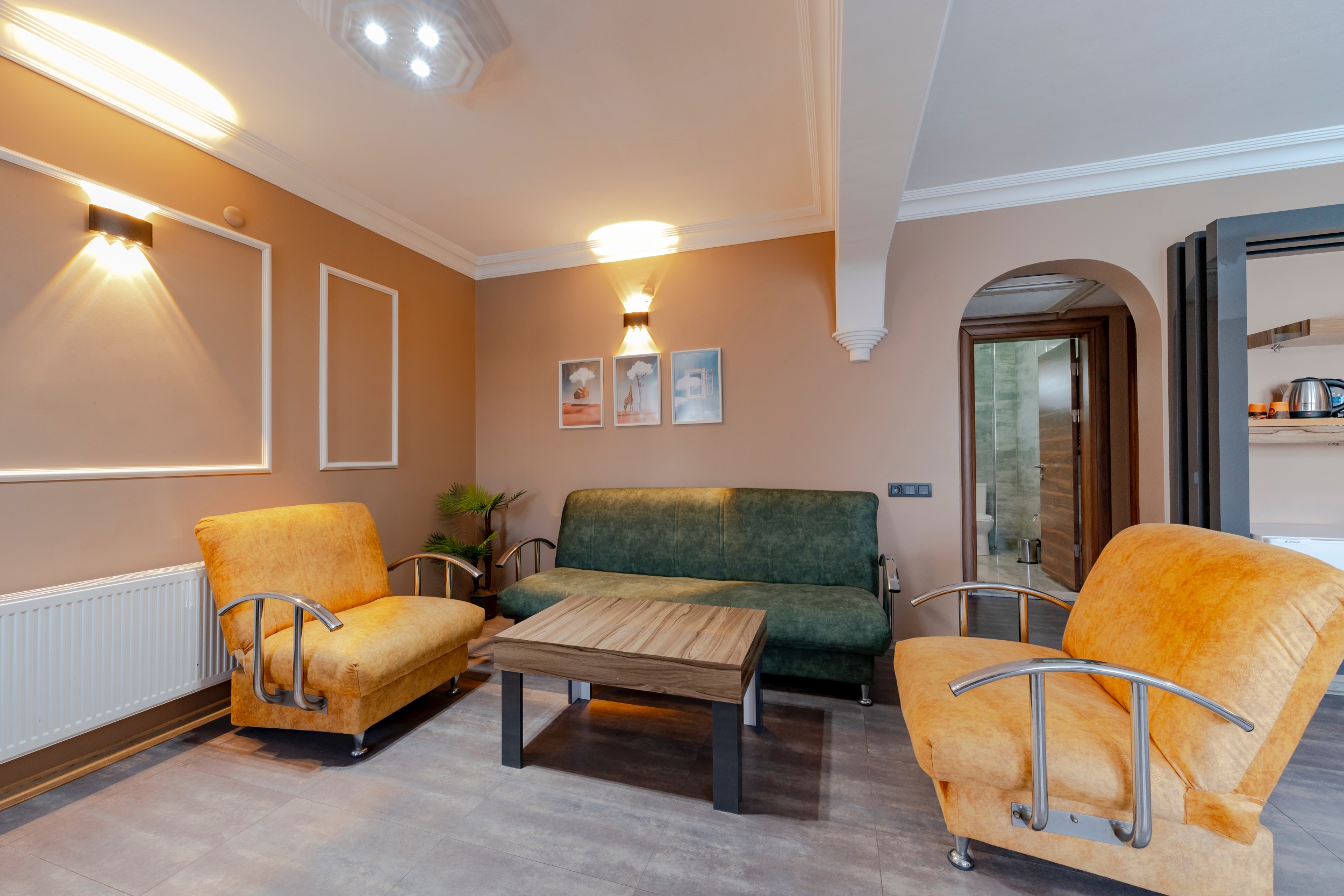 2 Yatak Odası, 1 Oturma Odası, 70 metrekare kullanım alanı, 1 Adet Çift Kişilik yatak, 2 adet Tek Kişilik Yatak, 4 Kişilik Oturma Grubu, Klima, Televizyon, Seramik Zemin, Karşılama Tepsisi, Minibar, Emanet Kasa, Wİ-Fİ